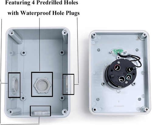 - PRE DRILLED HOLES - Take the hassle out of drilling holes & wall mounted. Featuring 4 predrilled holes with waterproof hole plugs at different positions ( Both Sides, Bottom and Back) makes your DIY project quick and easy to assemble with step-by-step instructions.No punching tools or drills required.Include 4 * mounting screw and anchor fastener set and 1* hole rubber grommet.