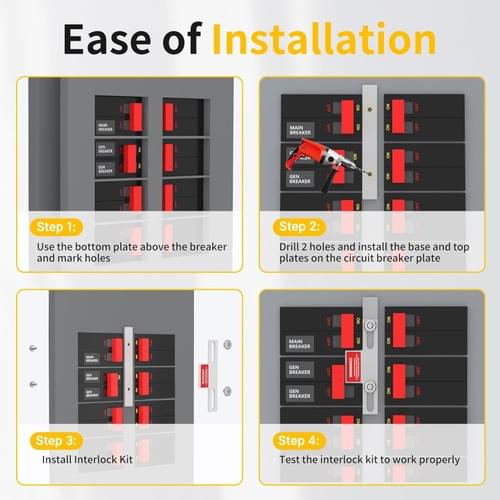 - Ease of Installation: The generator interlock kit comes with a 3/16" drill bit which is made of steel and plated with PVD titanium on the surface, you just need to measure, mark and drill. Remove the panel cover from the breaker panel and drill the three holes marked on the panel cover using the supplied drill bit