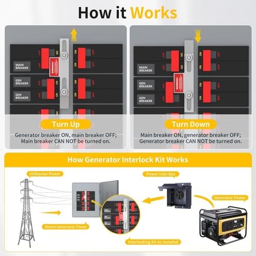 - Secure and Durable: The generator interlock kit can prevent utility and generator supplies from being ON at the same time and also protect the appliances being used from being burned out due to power failure, which makes your appliances and home wiring safer and more reliable