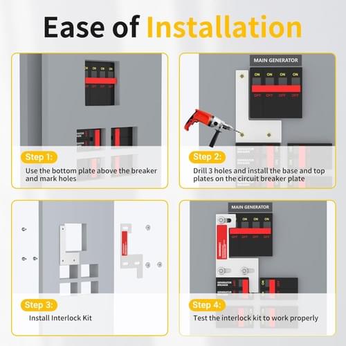 - Ease of Installation: The generator interlock kit comes with a 3/16" drill bit which is made of steel and plated with PVD titanium on the surface, you just need to measure, mark and drill. Remove the panel cover from the breaker panel and drill the three holes marked on the panel cover using the supplied drill bit